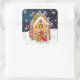 Adorable hand drawn gingerbread house and gingerbread couple outside on a starry night Holiday or Christmas stickers.