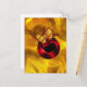 A bright and colourful gold Christmas postcard with a vivid shiny, red bauble on the front. The Christmas decoration also has a gold bow and small sprigs of red leaves. This gorgeous, very luxurious golden Christmas greeting will be sure to make a very festive impression on whoever receives it.