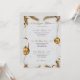 Design your own Christmas dinner menu using our sophisticated template that showcases gold Christmas decorations and green accents within a white embossed border, with the option to personalise the text style.