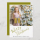 Festive Beautiful Golden Merry Christmas Photo Holiday Card. Customise the photo with your favourite family photo and family name.