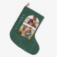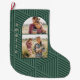 Festive Green Boho Geometric Two Photo Large Christmas Stocking