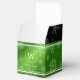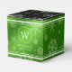 Add an extra festive touch to year-end and Christmas celebrations with this elegant favour box, which features snowflakes falling on faux metallic forest green foil / ombre / moire and black background. Add initial / monogram (or logo), name, or custom text as desired.