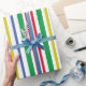 Festive Green Red Gold Blue Vertical Stripes Wrapping Paper
