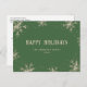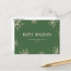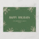 Elegant green holiday postcard featuring snowflakes on the front and a watercolor winter scene at the back. Easily personalise this festive holiday postcard with your text.