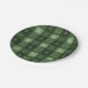 Festive Green Textured Plaid And Trees Christmas Paper Plate