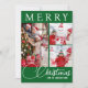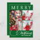 Spread holiday cheer this season with this classically festive green and white personalised Christmas card, featuring three of your cherished family photos on the front. Adorned with the word "MERRY" across the top and "Christmas" in a classic script across the bottom alongside your family name. On the back, customise the message to share a heartfelt, editable Christmas greeting, perfectly tailored to express your unique holiday wishes. Add your first names below the message to add a personal touch, creating a keepsake that friends and family will treasure. This card is the perfect blend of tradition and personalisation, making it an unforgettable way to spread holiday cheer.