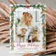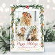 Festive Greenery & Bows Happy Holidays 3 Photo Holiday Card
