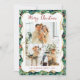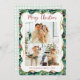 Festive Greenery Pattern Merry Christmas 3 Photo Holiday Card