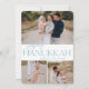 Our festive and elegant Hanukkah card design is the perfect way to show off three of your favourite family photos. Design features "Joyous Hanukkah" in elegant dusty aqua serif typography and hand lettered script, with your family name. Cards reverse to a white star pattern.