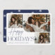 Our festive and elegant holiday card design is the perfect way to show off three of your favourite family photos. Horizontal or landscape orientated design features "Happy Holidays" in navy blue typography and hand lettered script, with your family name beneath.