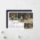 Our festive and elegant Hanukkah card design is the perfect way to show off three of your favourite family photos. Horizontal or landscape orientated design features "Joyous Hanukkah" in midnight blue typography and hand lettered script, with your family name beneath on a white background.