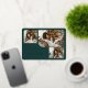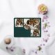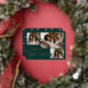 Our festive and elegant holiday card design is the perfect way to show off three of your favourite family photos. Horizontal or landscape orientated design features "Season's Greetings" in shining gold foil typography and hand lettered script, with your family name beneath on a forest green background.