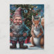Festive Grumpy Gnome and Squirrel Christmas Postcard