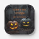 Festive Halloween Pumpkins and Floral Pattern Paper Plate