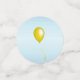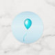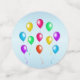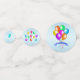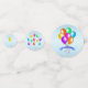 This table confetti is light blue with various festive bright balloons with streamers in multiple colours. Large circles have blue banner with the text Happy Birthday.