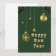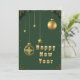 Elegant Christmas tree ornaments including golden baubles and festive decorations on a green background, creating a festive holiday ambiance.