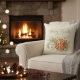 Accent your home with this cozy custom throw pillow, perfect for the holiday season. Featuring a charming 'Merry Hearth' design with a warm cup of cocoa, a beautifully wrapped gift, and festive greenery, this pillow adds a touch of seasonal magic to any couch or bed. Made from high-quality 100% polyester Simplex knit fabric, it is soft, wrinkle-free, and durable. The pillow includes a synthetic-filled insert and a hidden zipper enclosure for a clean look. Machine washable and made in the USA."