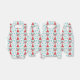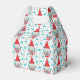 Super fun and cute for this holiday season. This design features a fun gnome with grey hair in two braids tied with red ribbons, in a tall red hat against a background of Christmas trees in shades of turquoise and red christmas balls.