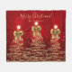 Elegant Merry Christmas / Happy Holidays "Blanket" Gold Trees with bows on red.