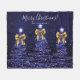 Festive Holiday Navy Christmas Trees Bows Gold Fleece Blanket