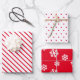 Festive Holiday Red and White Pattern Wrapping Paper Sheet