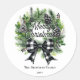 Festive Holiday Wreath BW Bow Merry Christmas Classic Round Sticker