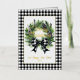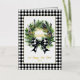 Elegant nostalgic watercolor black and white gingham check beribboned pine and berries holiday wreath "Merry Christmas" non-photo greeting design with coordinating back pattern design. All text is editable.