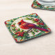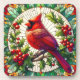 Festive Holly & Berries Stained Glass Cardinal Coaster