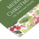 This vibrant and festive table runner showcases a watercolor design of red holly berries nestled among lush green leaves and delicate evergreen branches. Perfect for holiday gatherings, it captures the essence of the season, bringing warmth and cheer to your table decor.