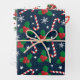 Festive Holly Berry & Candy Cane Christmas Wrapping Paper Sheet