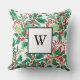 Festive Holly Christmas Monogram Throw Pillow