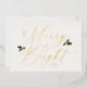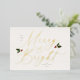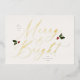 Festive Holly, foil holiday card. Features, "Merry & Bright" foil script and holly berry watercolor arrangement accents with solid red colour backing.