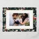Merry Christmas! Send your warm greetings to family and friends with this customisable Christmas photo card. It features a watercolour holly pattern on a dark green background. Personalise this gold foil Christmas card by adding your details. This botanical Christmas card is available in other colours and cardstock.