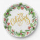 Festive Holly Wreath - Gold Foil Merry Christmas Paper Plate