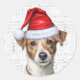Perfect for gift wrapping, card sending and around festive holiday stickers for the dog lover of Jack Russell Terrier, this funny Christmas dog wears a cute Santa hat.