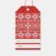 Add a modern and festive touch to your holiday gifts with these red and white tags. Design features "JOY" in retro red typography with a snowflake illustration standing in for the "O." Personalise with your names or family name. Tags reverse to a Nordic inspired sweater pattern with space to hand-write recipients' and gift givers' names.