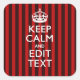 Festive Keep Calm Your Text on Red Stripes Square Sticker