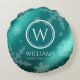 Festive Light Blue Foil Snowflakes Monogram Name Round Cushion