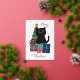 Festive Merry Christmas Cute Black Cat Designed by Sofia MyArt