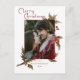 Festive modern interpretation of vintage holly illustration featuring custom Merry Christmas typography and colourful holly photo template. Back features complementary graphics and suggested greeting.