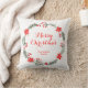Add holiday charm with this festive merry Christmas wreath family design, perfect for seasonal decor enthusiasts. The design features a green wreath with red flowers and berries, encircling red "merry Christmas" text and a family name below. Ideal for cosying up your living space during the holidays or gifting to loved ones for a warm, festive touch.