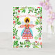 angel is dressed up for a vibrant holiday celebration. Your card will be printed on your choice of lovely paper options. Customisable with your text on both front and back. Make this card special with your own personal message.