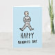 This design shows a cute, bandaged cartoon figure inspired by an ancient wrapped character, set against a calm light blue background. The figure stands in the center with arms crossed over its chest and legs spread wide, like it’s mid-dance for someone it adores ❤️. Its face is simple and friendly, with tiny black dot eyes and a small line mouth peeking through the wrapping, giving it an affectionate, approachable look. The white bandages are outlined in black, creating a strong contrast that makes the character pop against the soft blue setting. Near the bottom, the message “HAPPY MUMMIES DAY” appears in hand-drawn black letters, centered beneath the figure. The lettering looks slightly rough and crayon-like, adding a cozy, informal touch that feels like a note made for a close friend or loved one 🌼. The background stays uncluttered, with the light blue field surrounding the dancing figure and the black text below.