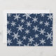 Modern holiday photo card featuring your favorite 5 photos arranged in a collage layout. Your custom greeting is featured in an elegant navy script with your family name and the year displayed to the right. The card reverses to display a navy and white snowflake pattern.