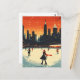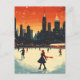 A beautiful postcard featuring ice skaters enjoying a winter day in New York City. The warm evening glow and string lights capture the cosy holiday charm of the USA’s most iconic city.