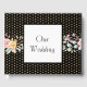 Black and gold background with floral band creates a festive but elegant look. Customise with personalised details of wedding, reception or other special events