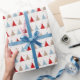 Festive Nordic Christmas Trees - Red, Blue & Beige Wrapping Paper