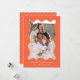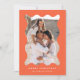 Send festive holiday greetings to your friends and family with this trendy holiday photo card! The simple Christmas card displays your vertical photo framed in a wavy, orange retro-style frame. Personalise the minimal holiday card with a custom greeting (shown as Merry Christmas) and your family name in white lettering. The card reverses to display a orange and white diagonal stripe pattern.