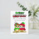 Cute holiday owls cuddling on a tree branch. Affordable Christmas postcard with hand drawn artwork.