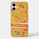 This case is adorned with a colourful confetti toss over an orange background. A yellow outlined orange ribbon allows the text to stand out from the design. Fill in the template field with your name/initial(s) or use the edit design tool to select a font style, size and colour you prefer.